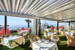 淡路島の海と夕陽を一望できるオープンデッキで、新鮮な食材と「はちみつ」を組み合わせたオリジナル料理を満喫。