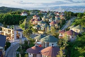 広大な兵庫県立淡路島公園「ニジゲンノモリ」の最も高台に位置するラグジュアリーホテル。客室の天窓から眺める星空は天然のプラネタリウム。全室ヒノキ風呂を設置、心身共に癒される別格のスポット。